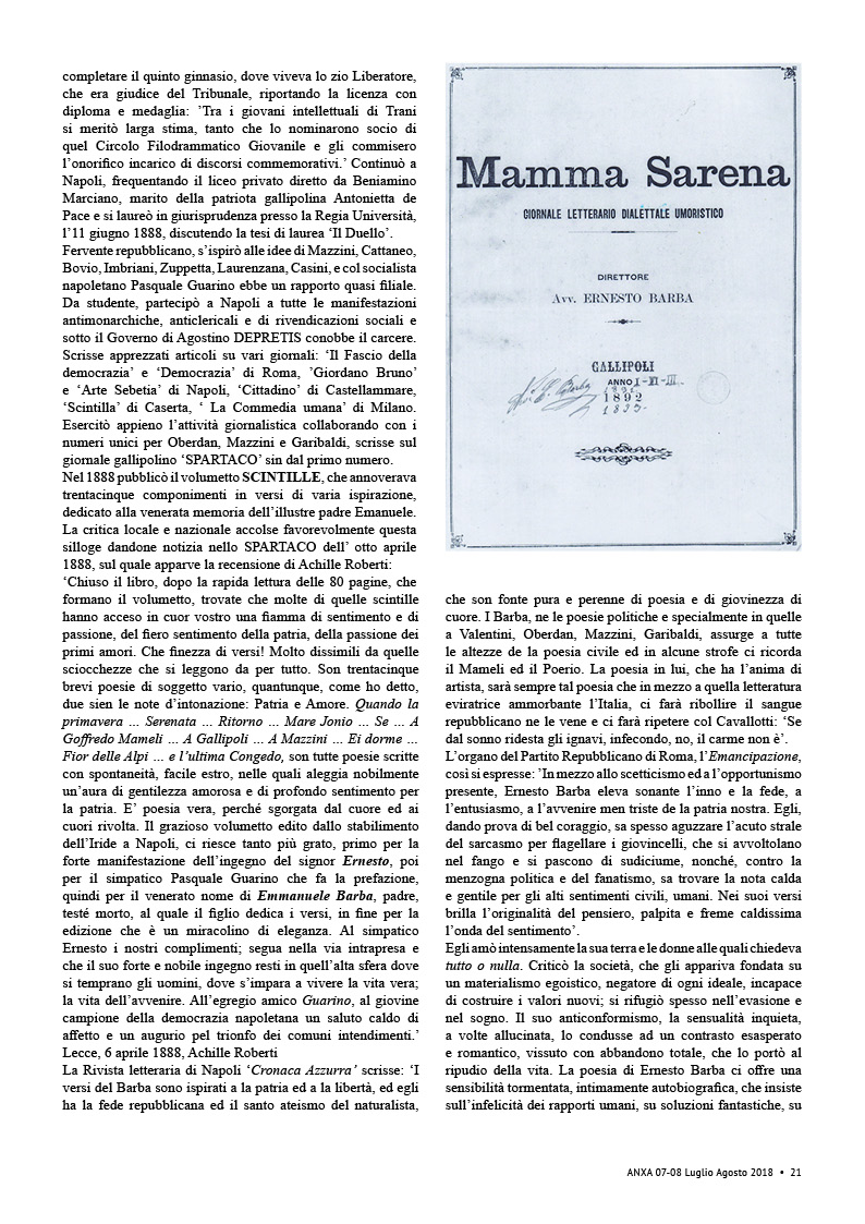 20 Ernesto Barba (1862-1902) poeta di ‘Scintille’, direttore di ‘Mamma Sarena’ Luigi Giungato